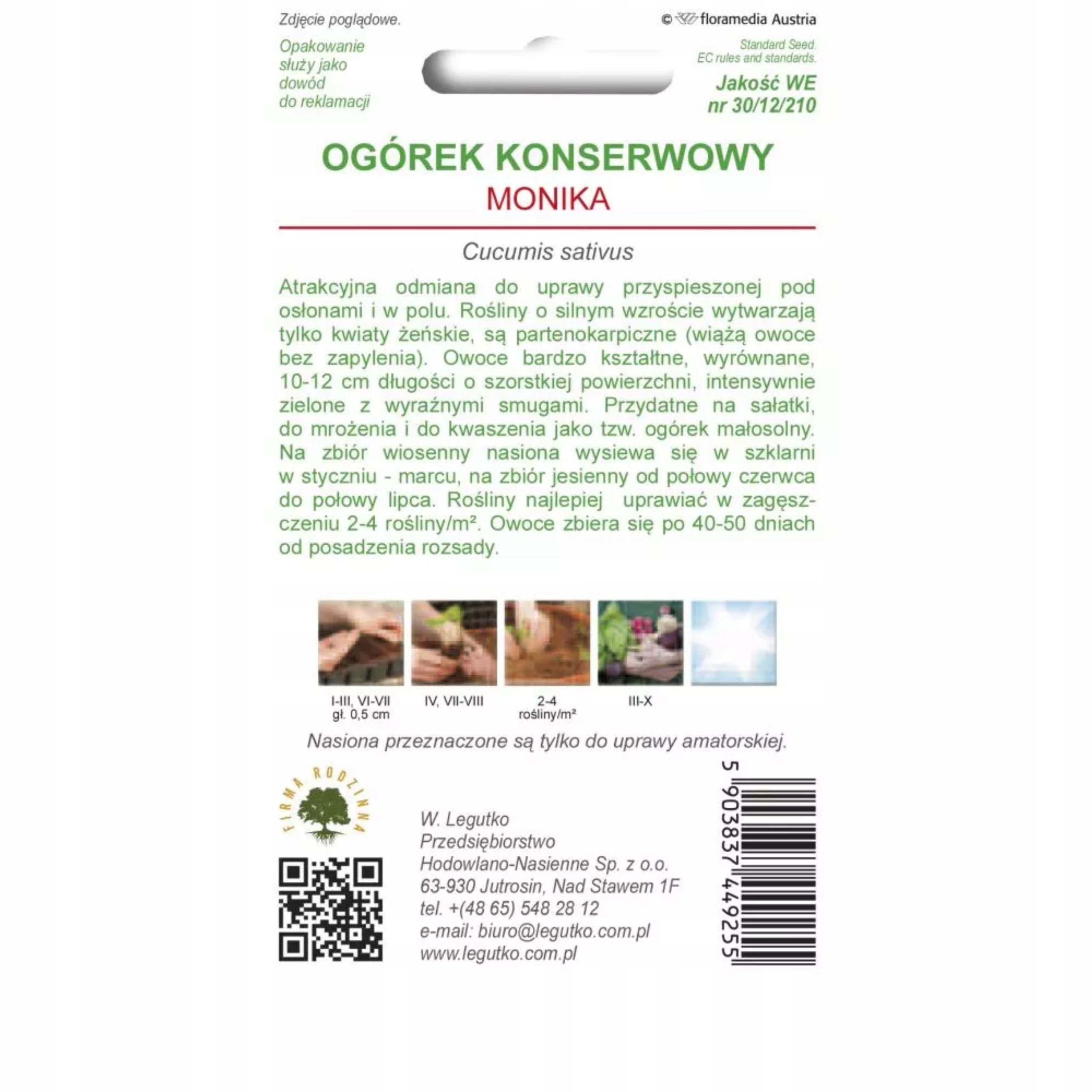Przedstawiamy nasiona ogórka 'Monika' od W.Legutko - doskonały wybór dla entuzjastów uprawy pod osłonami. Ta atrakcyjna, bardzo wczesna odmiana jest idealna zarówno do uprawy przyspieszonej w szklarni, jak i w polu.