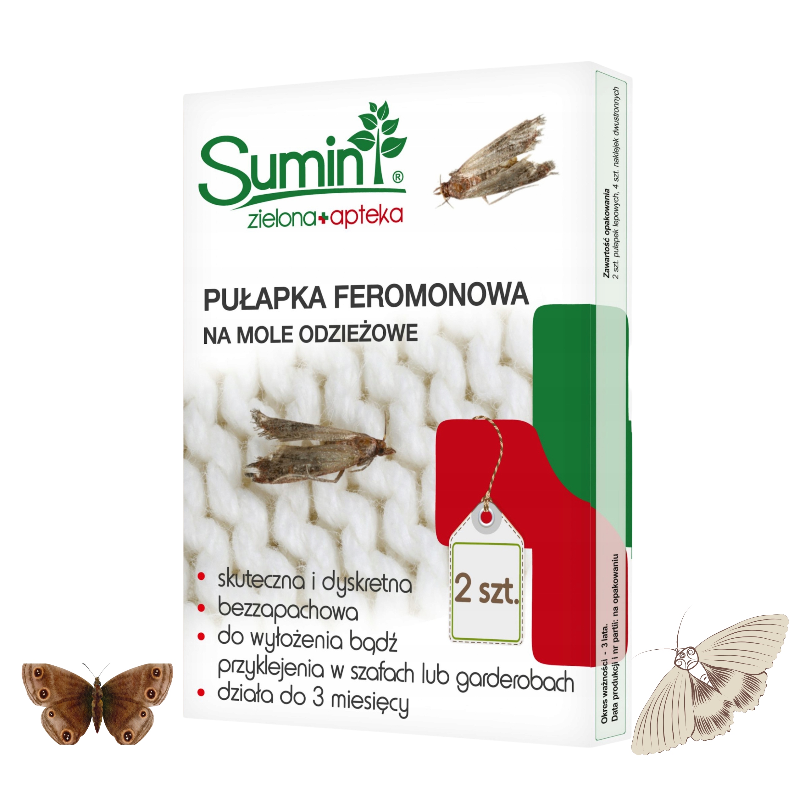 PUŁAPKA NA MOLE ODZIEŻOWE SUMIN LEP NA MOLE W UBRANIACH NA MOLE W SZAFIE x2